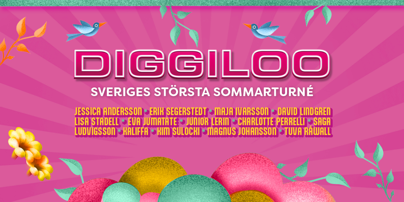 Vilken fest det kommer att bli sommaren 2026! Diggiloo kommer att dra land och rike runt som ett musikaliskt fyrverkeri. Sveriges största sommarturné blir en pulserande karneval i sambatakt med schlagergiganter, rockstjärnor, humorhybrisfavoriter, nya stjärnskott och kära återseenden.